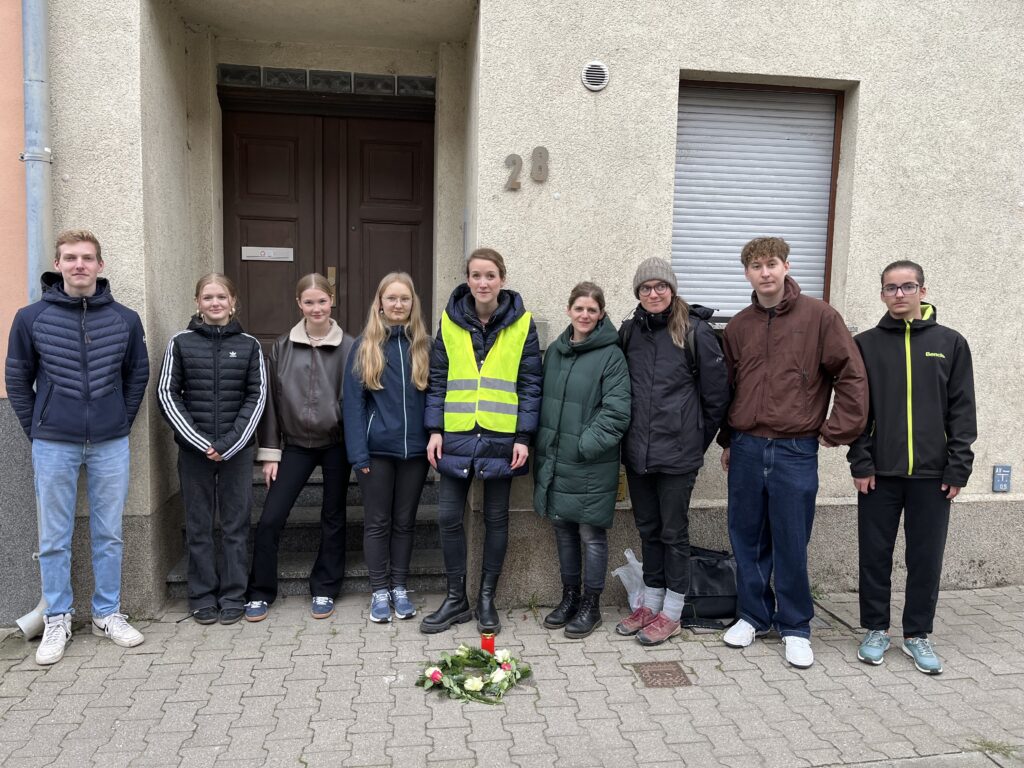 Am Sonntag, den 9. November 2025, beteiligten sich zehn Schülerinnen und Schüler des gesellschaftswissenschaftlichen Profils am Stolpersteinputzen in Groitzsch.